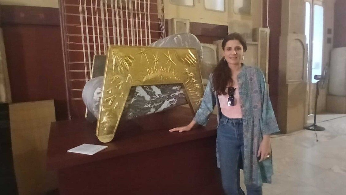 Nell’ambito di “Sotto lo stesso cielo”, Giulia Tubelli ha esposto due creazioni di design che riflettono il suo approccio unico. La prima è una sedia che trae ispirazione dai troni dei faraoni, caratterizzata da una struttura in legno rivestita di ottone sbalzato. Questo materiale è lavorato con la stessa tecnica utilizzata per le porte delle moschee, e presenta simboli reinterpretati in modo originale. La seconda opera è un arazzo che si ispira alle divinità egizie, collocato all’ingresso delle piramidi e alle facciate del Cairo. Questo pezzo è realizzato con un innovativo materiale fornito dall’azienda marchigiana i-Mesh, noto per la sua durabilità nel tempo.